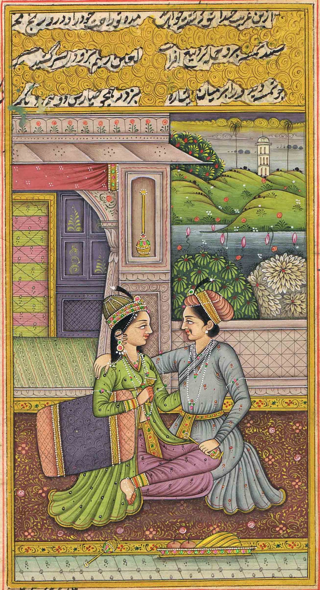 Moghal King Making Love With Queen on Antique Paper with Handwritten Scripts on the back side