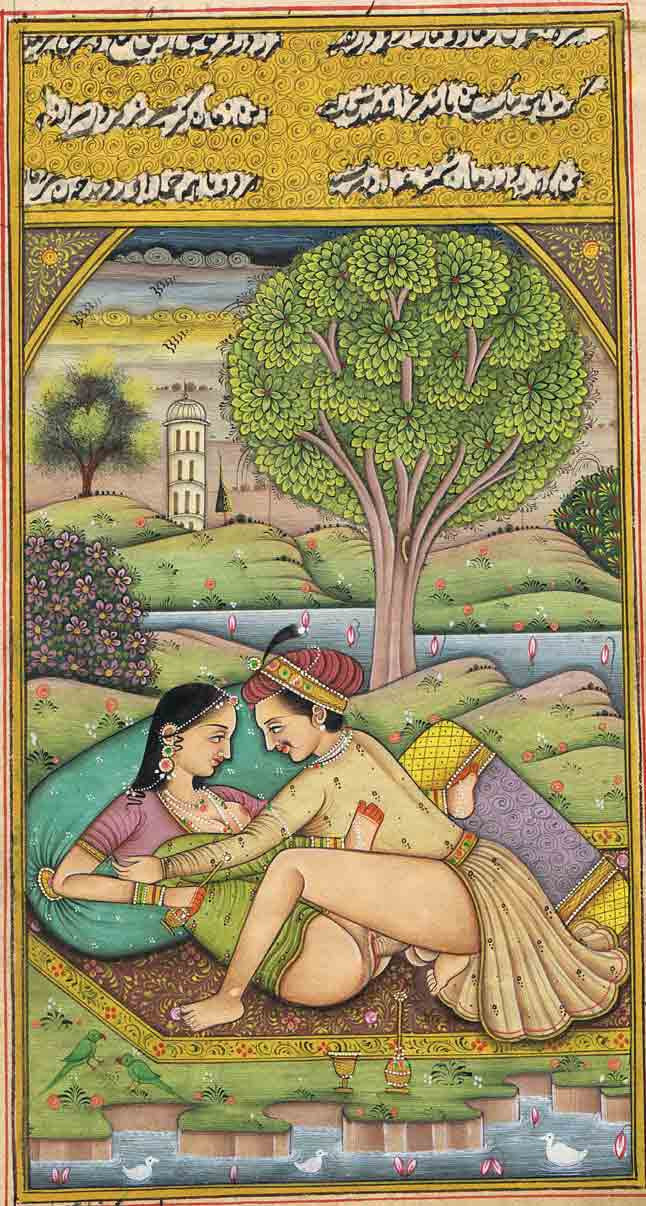 Kamasutra Painting On Antique Paper With Handwritten Script