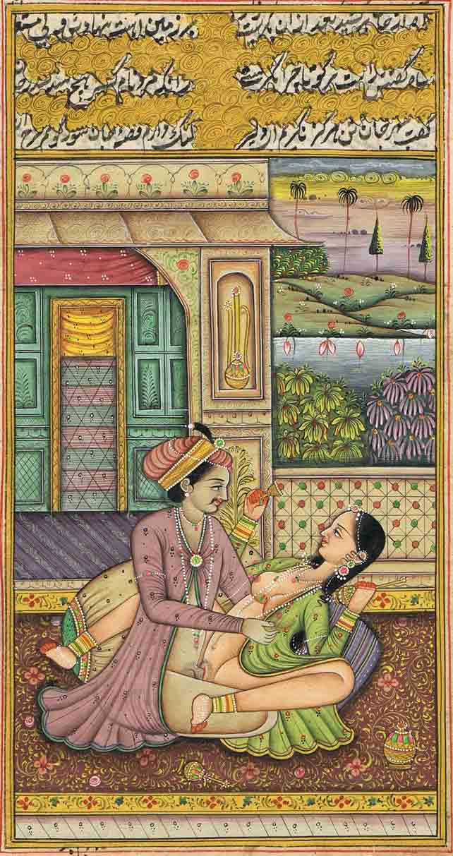 Kamasutra Painting On Antique Paper With Handwritten Script