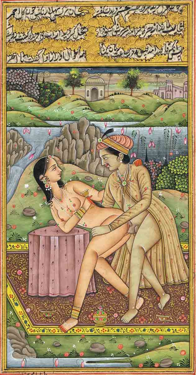 Kamasutra Painting On Antique Paper With Handwritten Script