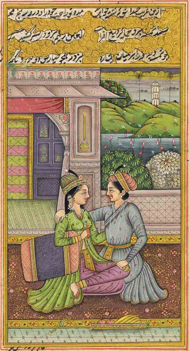Kamasutra Painting On Antique Paper With Handwritten Script
