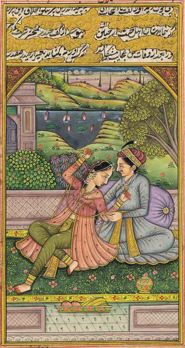 Kamasutra Painting On Antique Paper With Handwritten Script