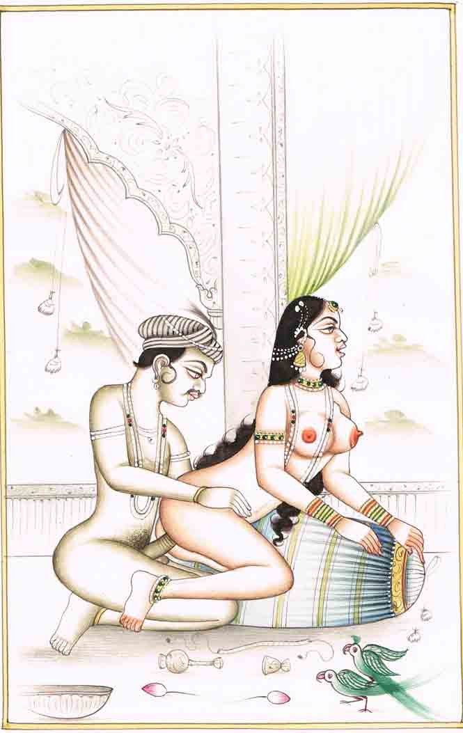 Kamasutra Painting On Antique Paper With Handwritten Script