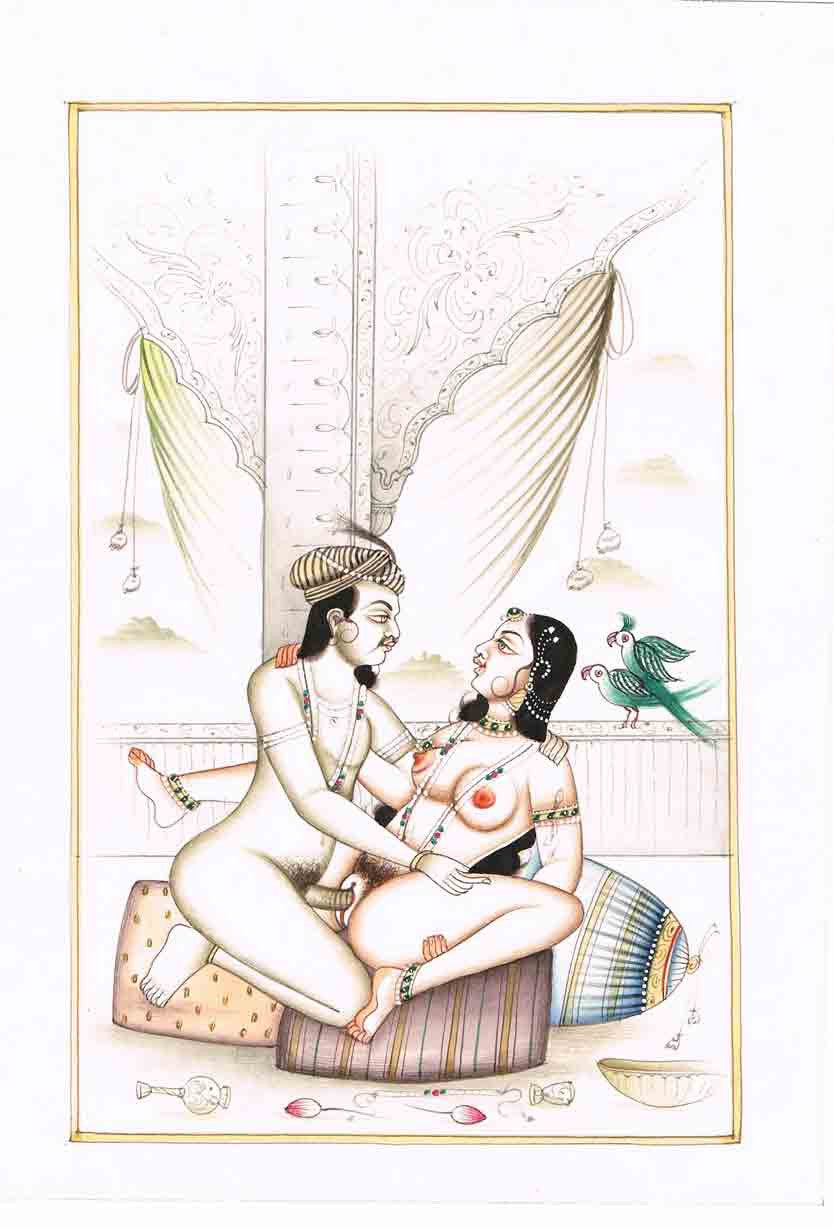 Kamasutra Painting On Antique Paper With Handwritten Script