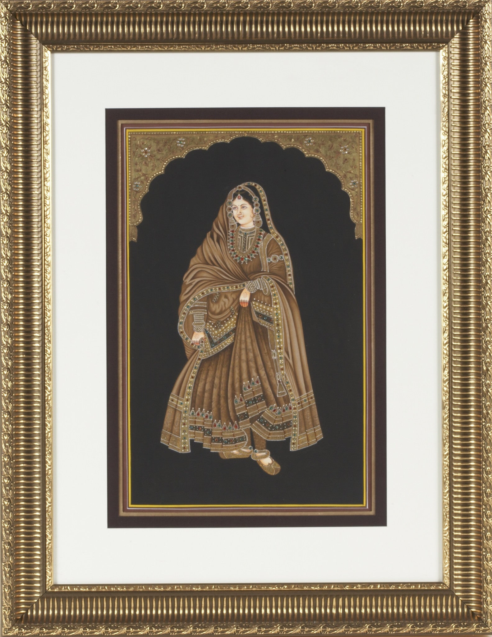 Gold Miniature Painting Of King & Queen Pair With Semi Precious Jewels