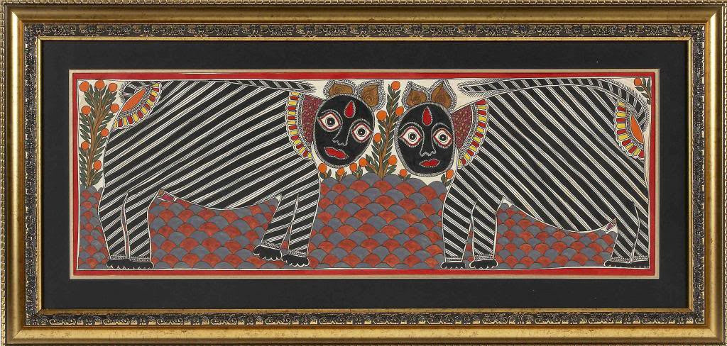 Madhubani Painting Cats Framed( 17inch x 36 inch) Free Shipping