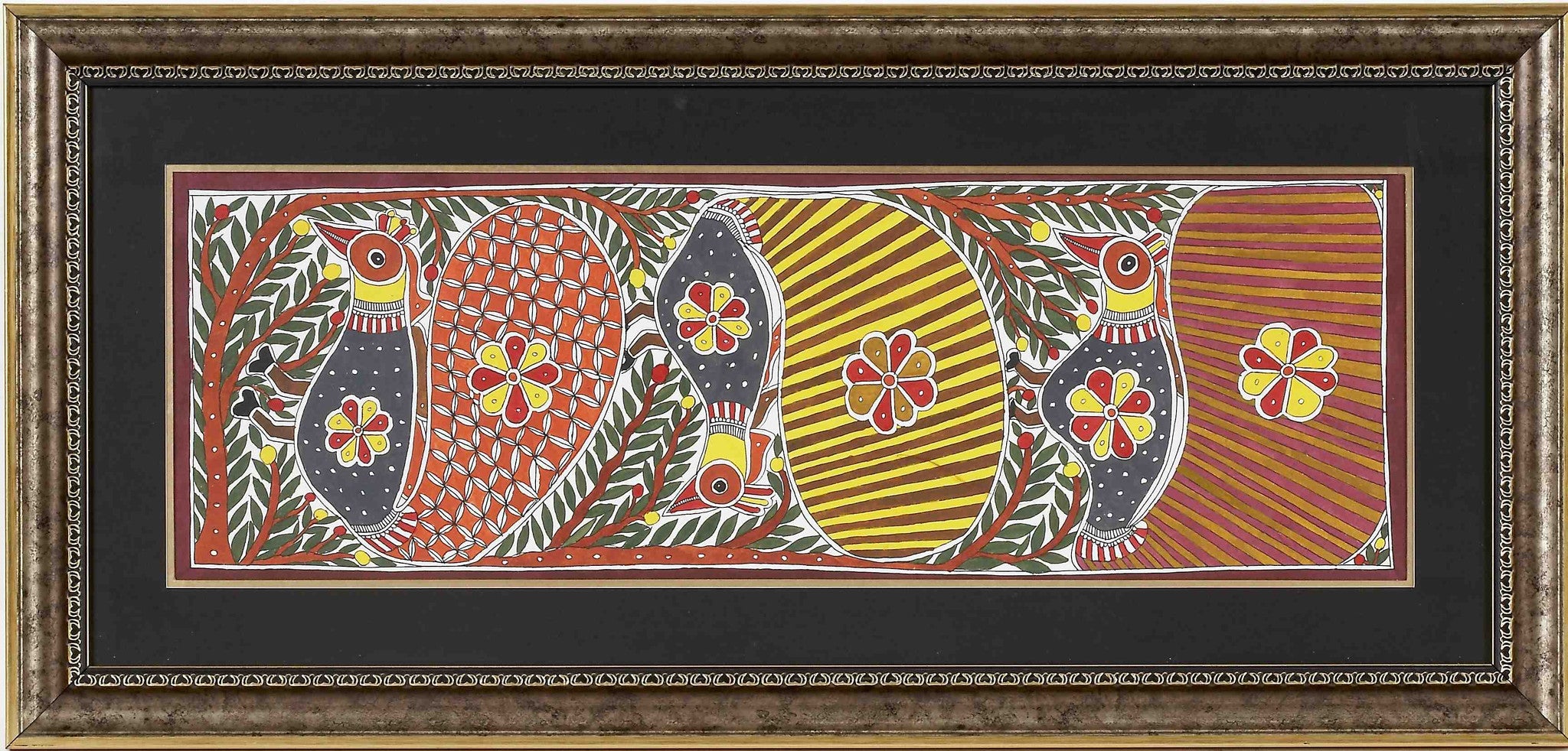 Madhubani Painting Pair Of Hans Birds By Baua Devi