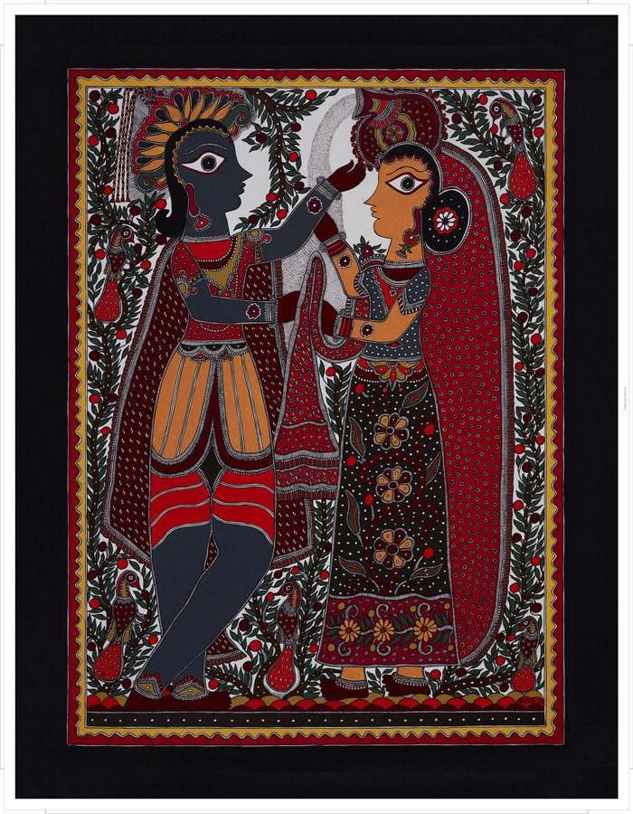 Krishna With Gopi Madhubani Painting Acrylic Colors On CanvasArtist : Baua Devi