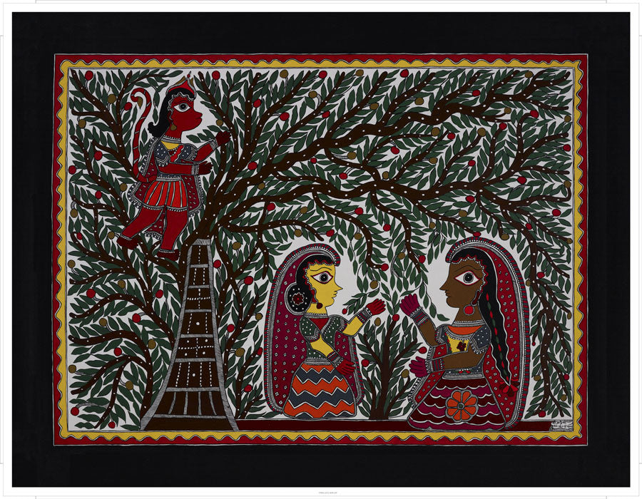 Lord Hanuman With Maa Sita Madhubani Painting By Baua Devi