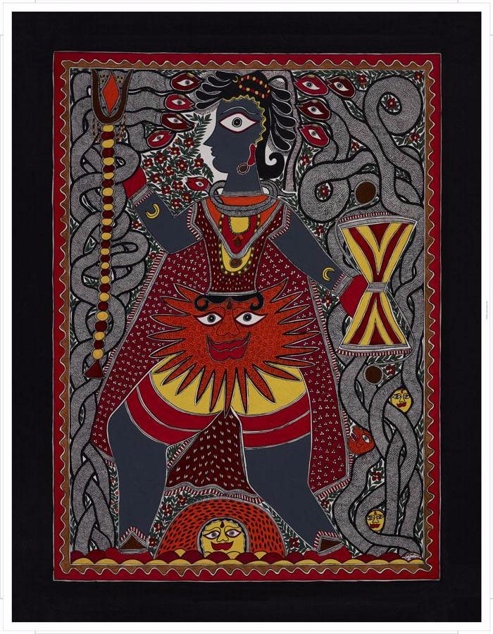Lord Shiva Madhubani Painting By Baua Devi 60 inchesDimensions: 60 inches x 48inchesMaterial: Arcylic on CanvasComes in A Tube Rolled