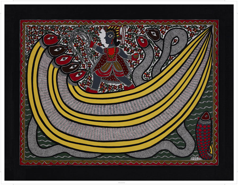 Kalia Daman The Visciously Venomous Serpent Being Killed By Lord Krishna Madhubani Painting By Baua Devi