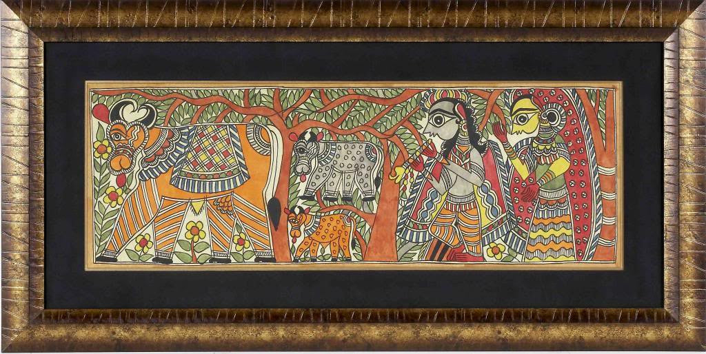 Madhubani Painting Krishna With Cow By Baua Devi 17 X 36 inch