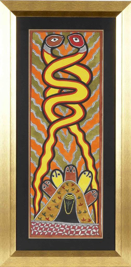 Madhubani Painting Ram Sita By Baua Devi 17 X 36 inch with framed (Free Shipping)