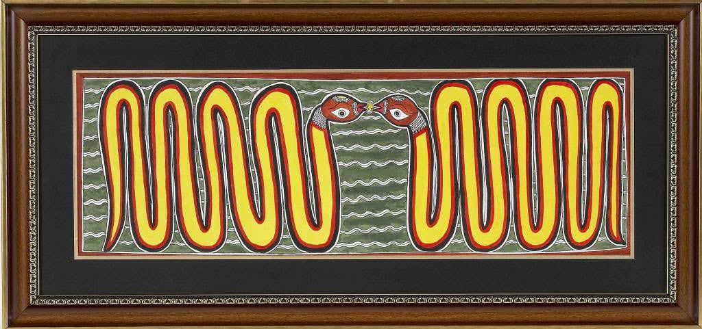 Madhubani Painting Ram Sita By Baua Devi 17 X 36 inch with framed (Free Shipping)