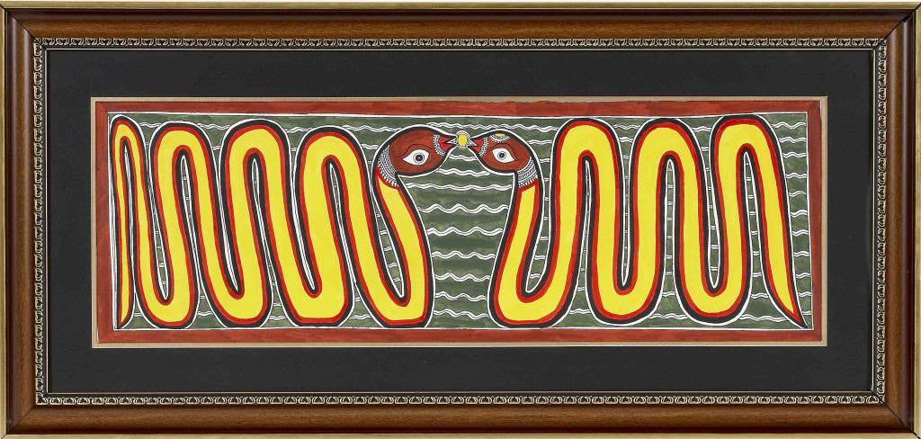 Madhubani Painting Pair Of Birds By Baua Devi 17 X 36 inch