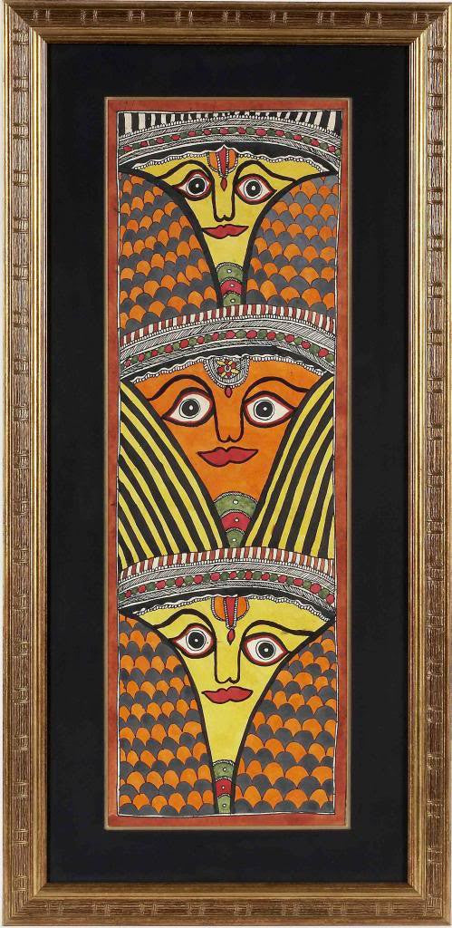 Madhubani Painting Ram Sita By Baua Devi 17 X 36 inch with framed (Free Shipping)